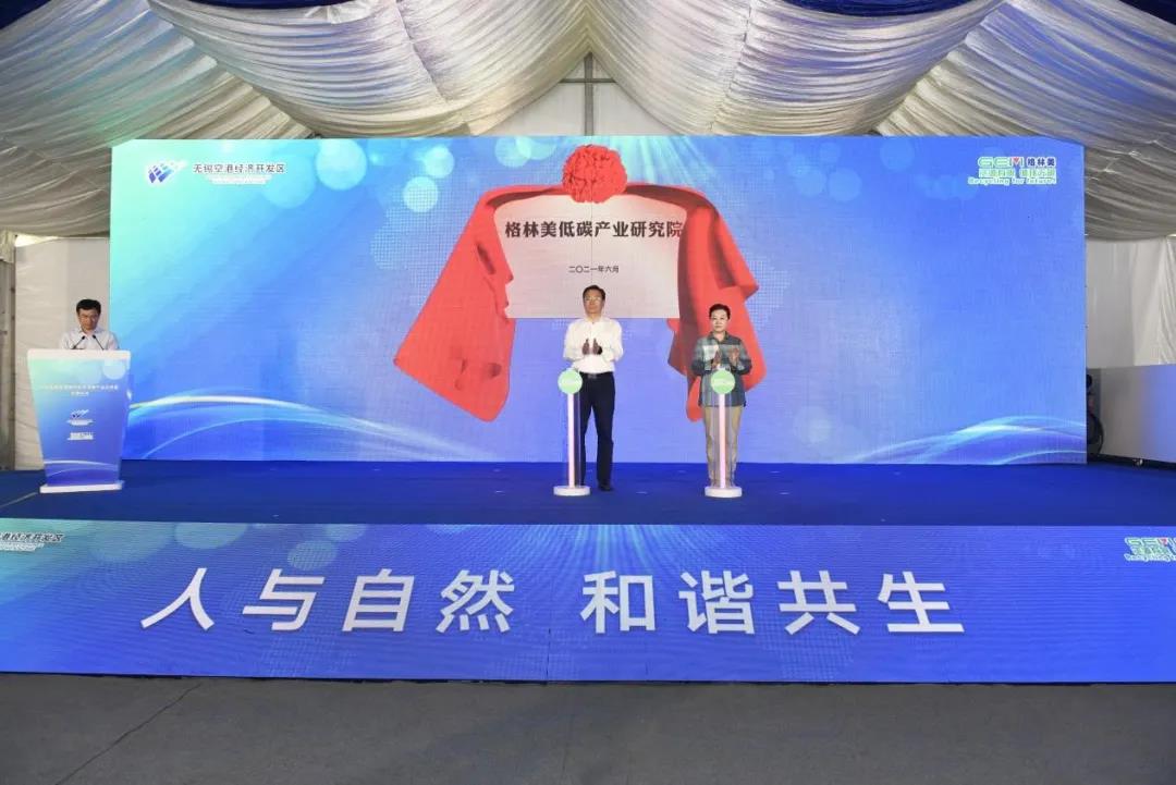 高新区党工委副书记、管委会主任、新吴区委副书记、区长崔荣国与格林美董事王敏女士为"格林美低碳产业研究院"揭牌