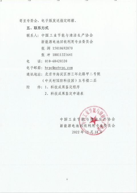 关于开展新能源电池回收利用领域科技成果鉴定工作的通知